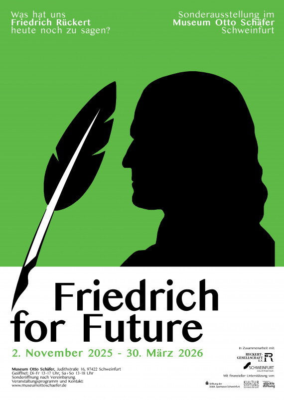 Unter dem Titel „Friedrich for Future“ lädt die Ausstellung im Museum Otto Schäfer die Besucherinnen und Besucher ein, Rückert jenseits verstaubter Schulbücher und Anthologien kennenzulernen – als zeitgenössischen Gesprächspartner zu Themen, die jeden Einzelnen von uns betreffen: Von der Heimat, über Liebe und Trauer bis zu Natur und Umwelt.